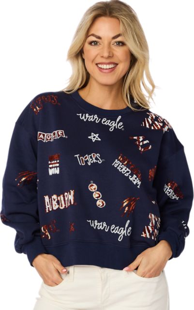 Auburn Tigers Women's Oversized Turtleneck Pullover with Bold Stretch-Knit Striped Detail